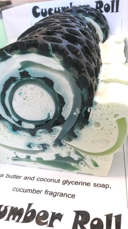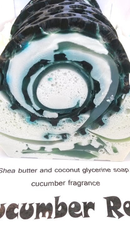 Whipped shea butter and glycerin soap with cucumber fragrance.