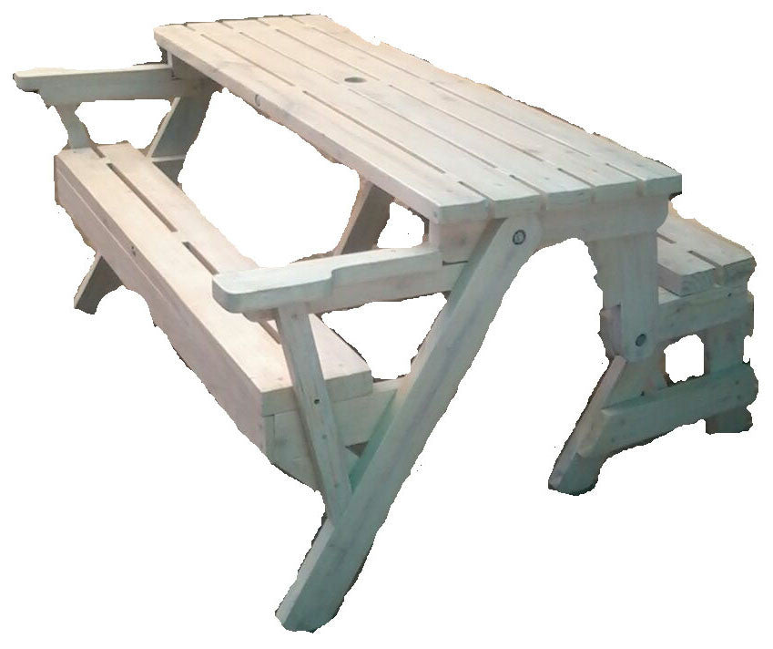 4 seater bench with back rest folds out to two 4 seater benches with a table